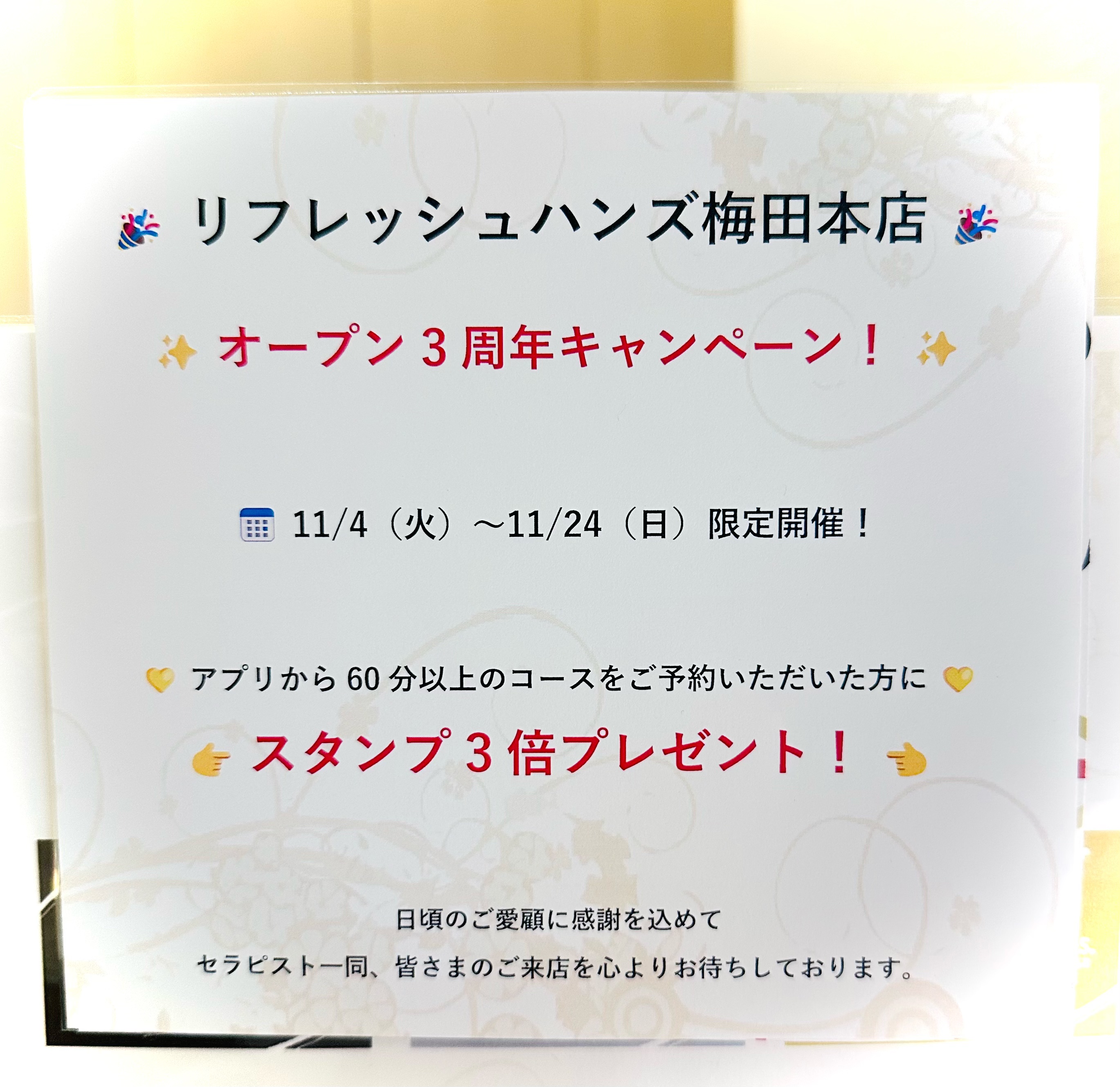 梅田本店、おかげさまで11月で3周年を迎えることが出来ました!